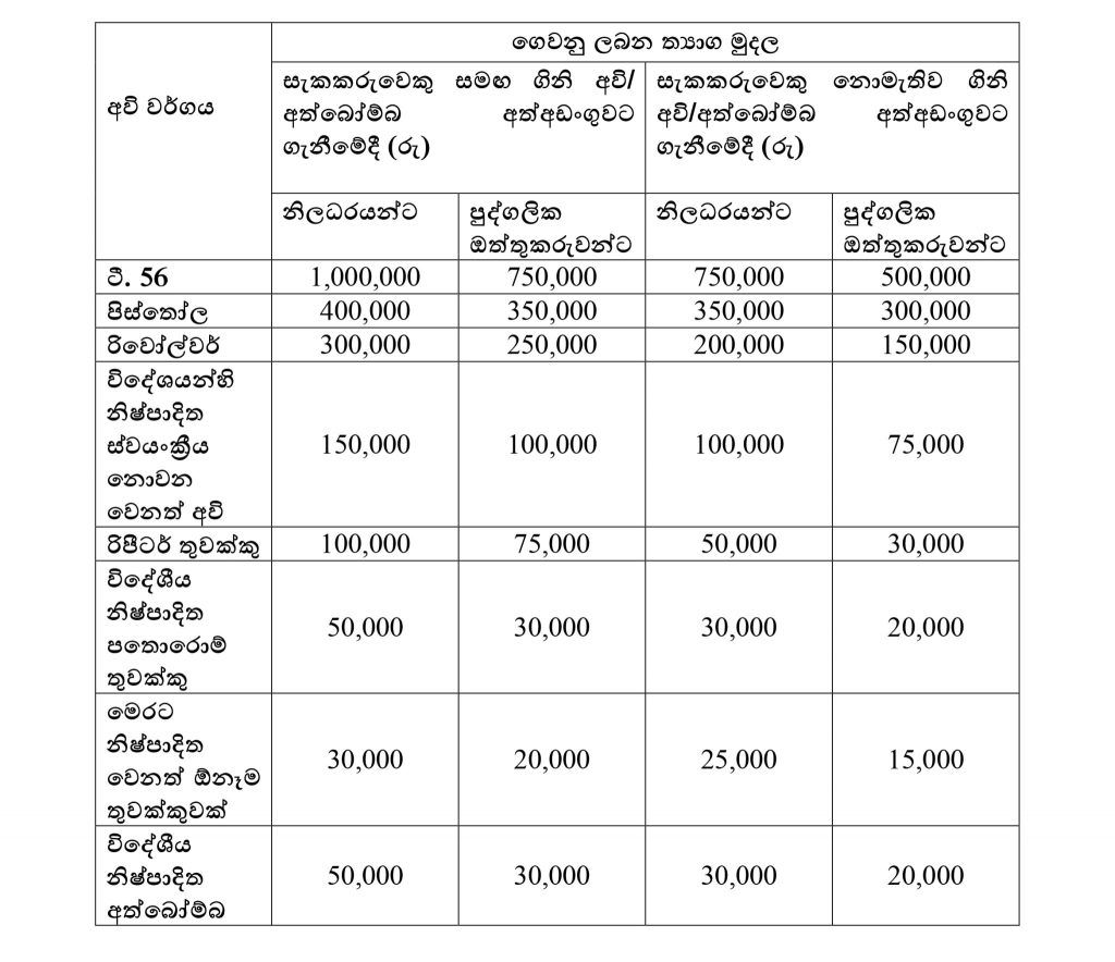 ඒ අනුව, පොලිස් අරමුදලින් ගෙවනු ලබන ත්යාග මුදල පහත දක්වා ඇති පරිදි වැඩි කර ඇත.