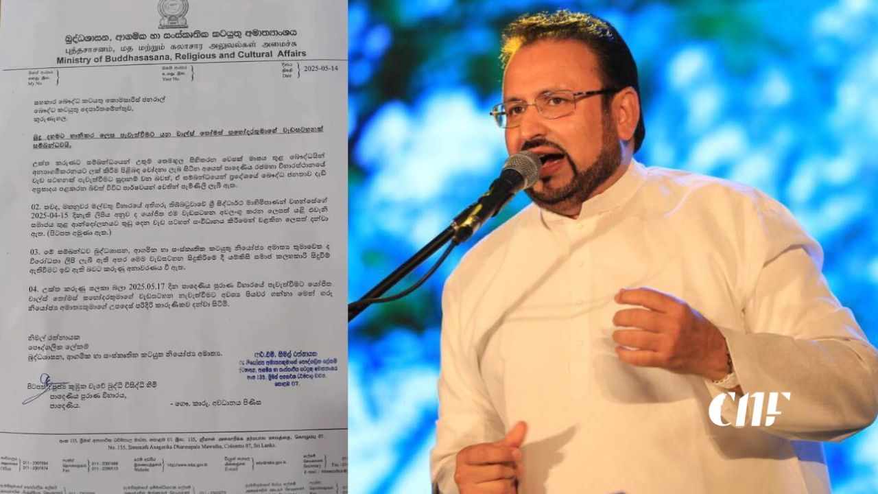 බුදු දහමට හානිකර ලෙස පැවැත්වීමට යන චාල්ස් තෝමස් සහෝදරතුමන්ගේ වැඩසටහනක් පිළිබඳව බුද්ධ ශාසන ආගමික හා සංස්කෘතික කටයුතු අමාත්යංශ විශේෂ නිවේදනයක් නිකුත් කර ඇත.