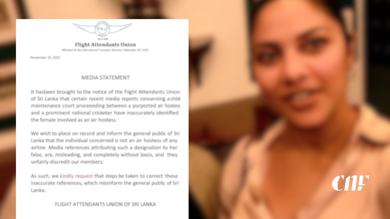 තම දරුවාගේ පියා ක්රිකට් ක්රීඩක චාමික කරුණාරත්න බව පවසමින් මහේස්ත්රාත් අධිකරණයට නඩු කටයුත්තකට පැමිණි තරුණිය ‘ගුවන් සේවිකාවක්’ ලෙස වැරදි ලෙස හඳුන්වා දීම සම්බන්ධයෙන් ශ්රී ලංකා ගුවන් සේවිකාවන්ගේ සංගමය විසින් නිල ප්රකාශයක් නිකුත් කර තිබේ.