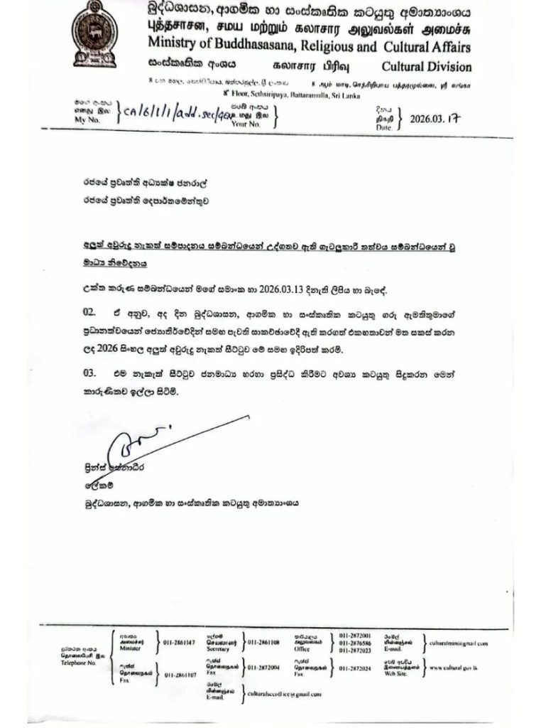 අලුත් අවුරුදු නැකැත් සම්පාදනය සම්බන්ධයෙන් උද්ගතව ඇති ගැටලුකාරී තත්ත්වය සම්බන්ධයෙන් පැවැති සාකච්ඡාවෙන් පසු ඇති කරගත් එකඟතා මත සකස් කරන ලද ඒකාබද්ධ නැකත් සීට්ටුව එළි දක්වා තිබෙනවා. බුද්ධශාසන, ආගමික හා සංස්කෘතික කටයුතු අමාත්‍යාංශය විසින් මෙම නැකත් සීට්ටුව එළි දක්වා තිබෙනවා.