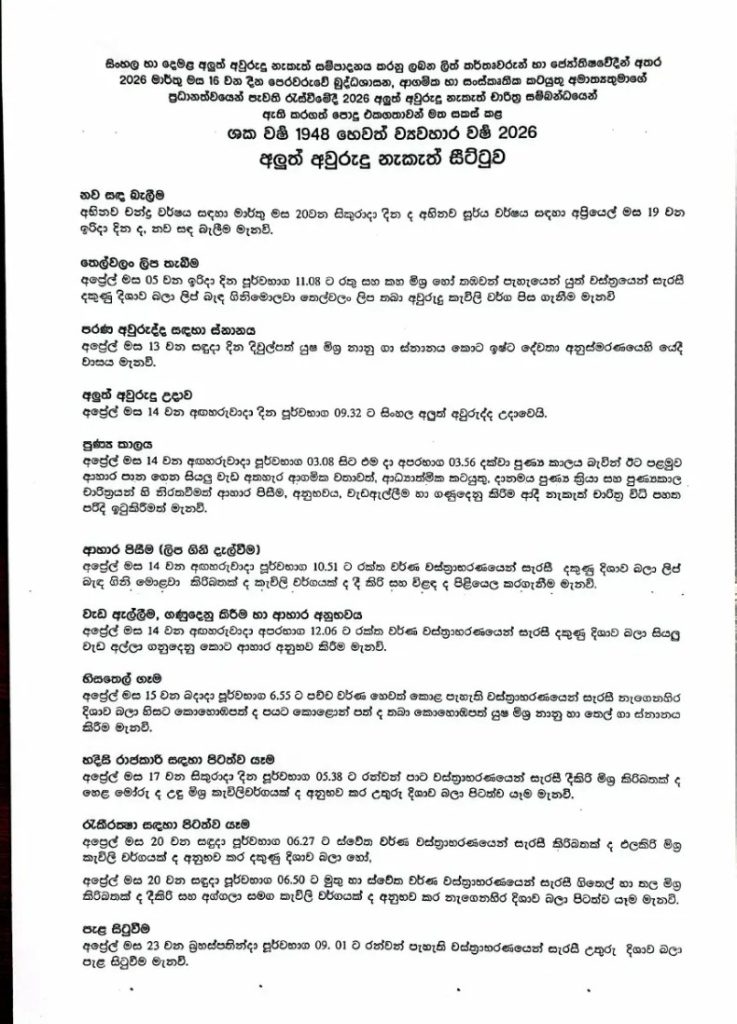 පොදු එකඟතාවයෙන් සකස් කළ අවුරුදු සීට්ටුව මෙන්න